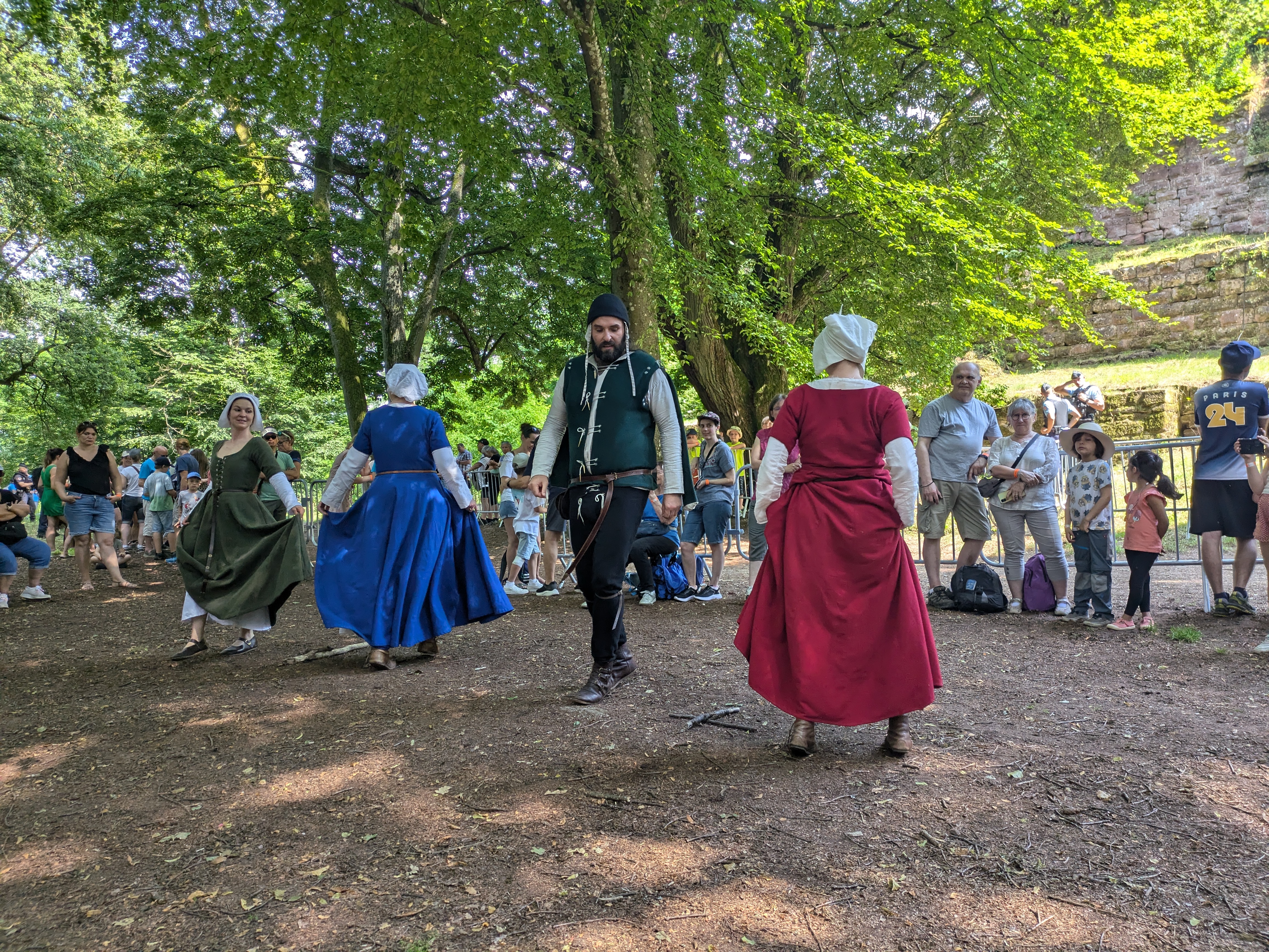 Avec Les Joyeulx Bransleurs, les danses médiévales et Renaissance reprennent vie au cœur du château. Après quelques démonstrations, la ronde s’ouvre au public : apprendre quelques pas, se laisser guider et entrer dans la danse. Une animation participative, avec des chorégraphies et costumes inspirés des sources historiques.